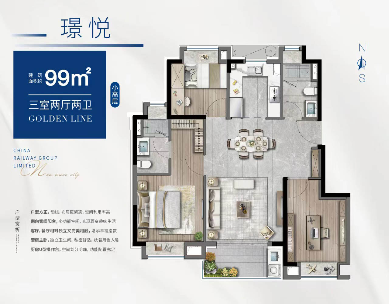 中国中铁•诺德璟宸深谙临港人居需求,以引以为傲的诺德幸福+生活体系为基础,匠心打造建面约89—129㎡幸福+菁智住区,全生命周期户型,空间布局合理,功能与尺度兼顾,满足不同客群、不同生活阶段的居住需求,赋予生活更多生命力。”