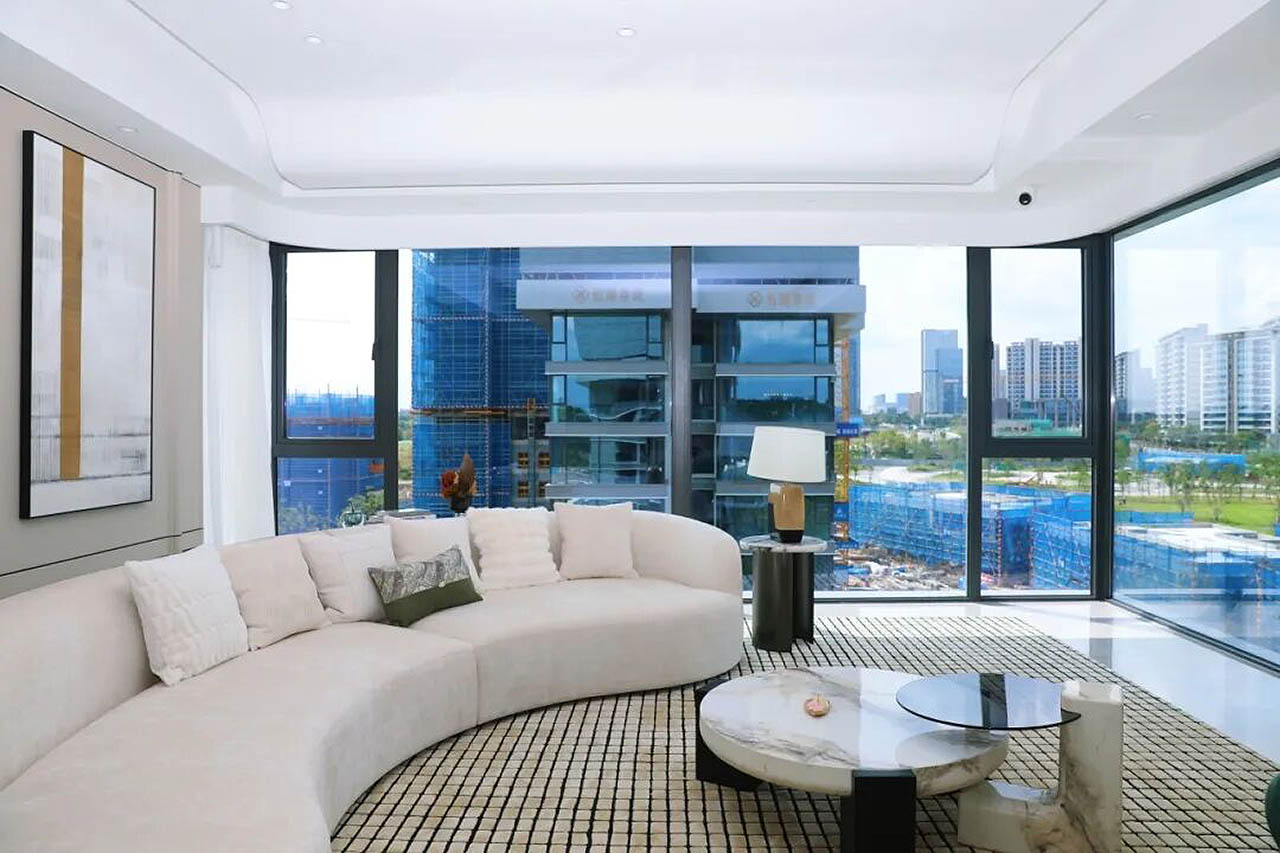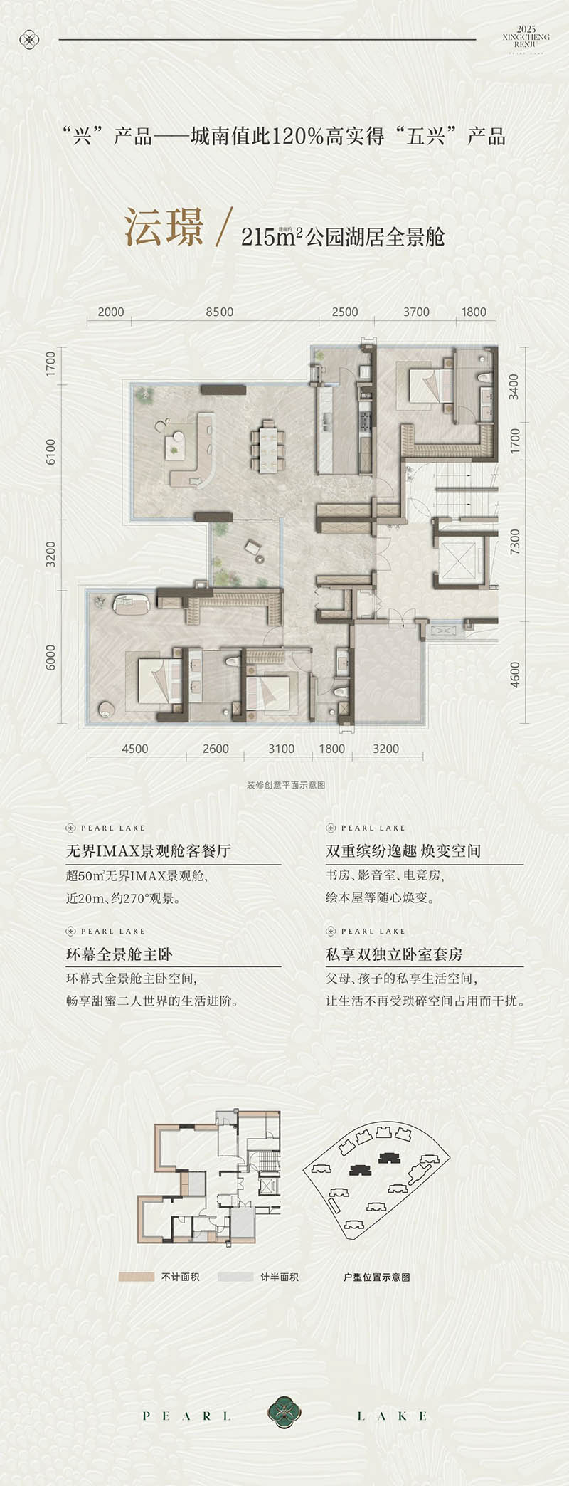 舒朗的布局,不仅让部分户型可直接眺望怡心湖主湖景,为使用全景舱提供了足够的视野支持;更让楼栋间形成两个约2000㎡以上的中庭空间,为景观系统和架空层提供资源基础。
