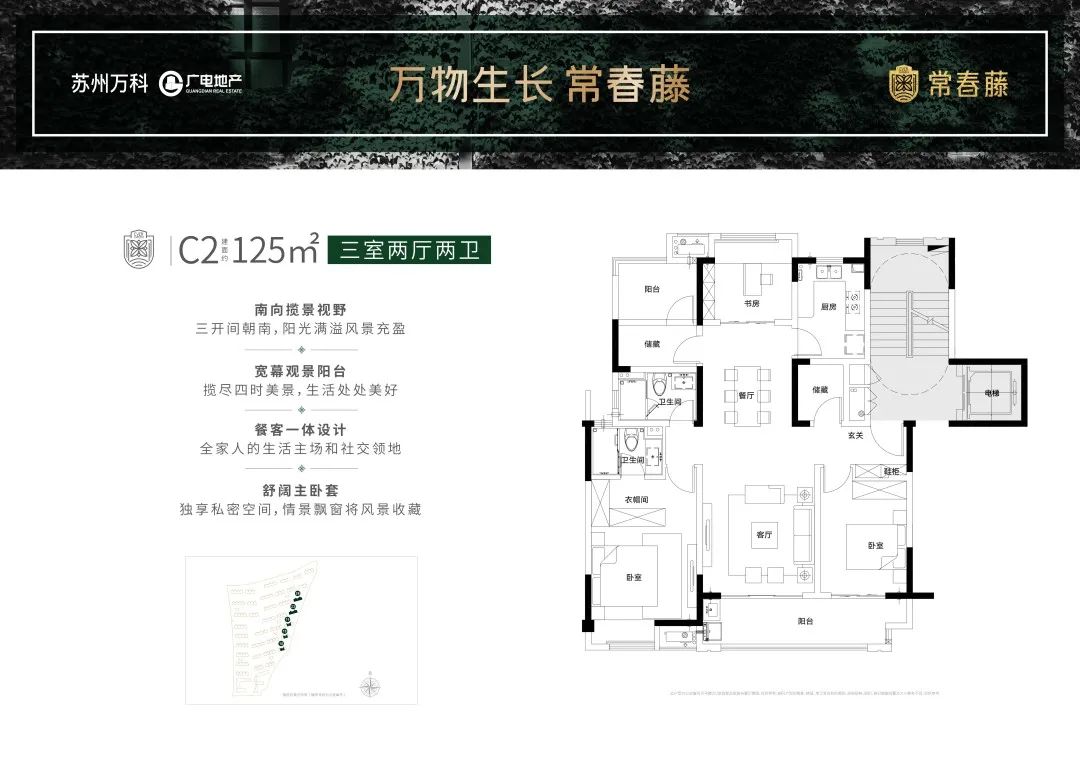 常春藤规划建面约90-125㎡全龄自由户型,低密纯洋房住区,南北通透,得房率高,赠送面积大,打造2+1房,功能三房,奢华3+1房,赋予精装3.0标准,携手万科物业,共同构造美好生活合集,引领一代湖居作品新典范。